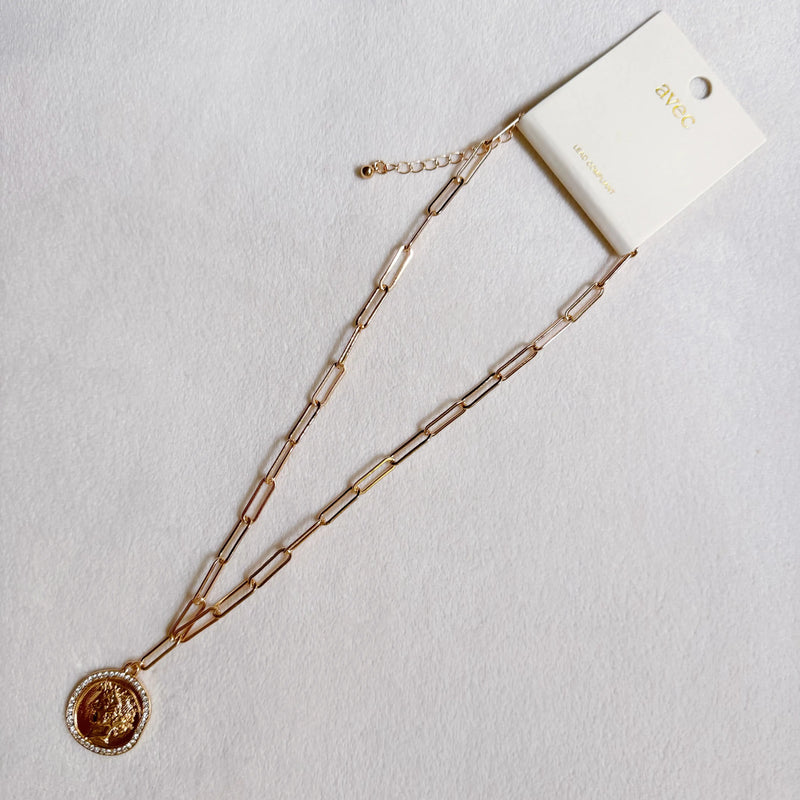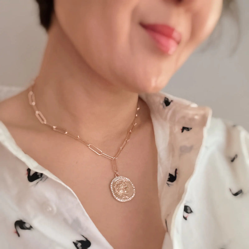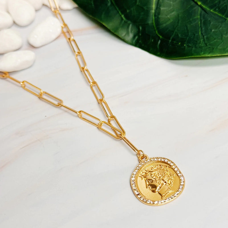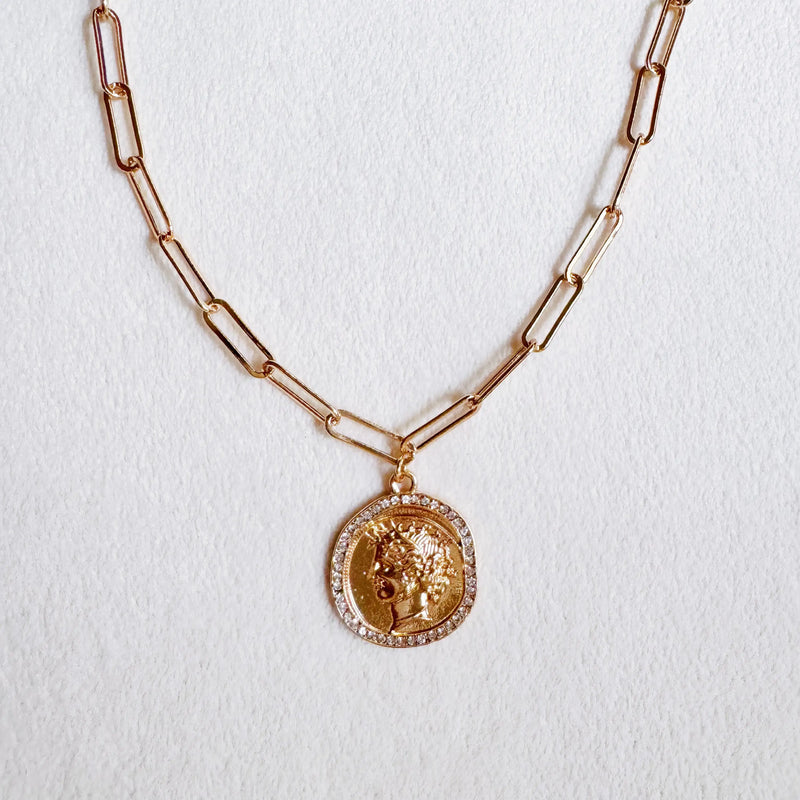 This classic chain necklace is elevated with a touch of glamour and edge through its dangling coin charm. Expertly crafted, this necklace adds the perfect finishing touch to any outfit. Shine and stand out with the Glam Edge Coin Link Chain Necklace.