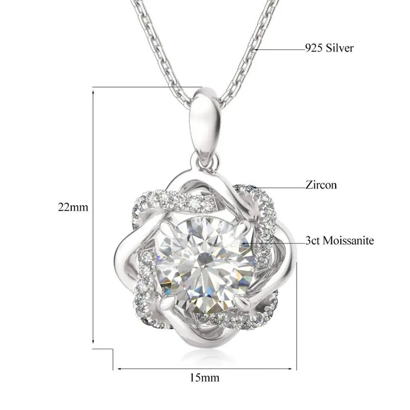 Brand: SzjinaoMain Stone: Moissanite StoneSide Stone:AAA+ Cubic ZirconiaMoissanite Size: 9mmMoissanite Weight: 3ctMoissanite Color: D ColorMoissanite Clarity:VVS1Stone Shape: RoundMetal Type: Solid 925 Sterling SilverMetal Color: White Gold ColorCertifiicate: GRA CertificateNecklace Length: 45cm