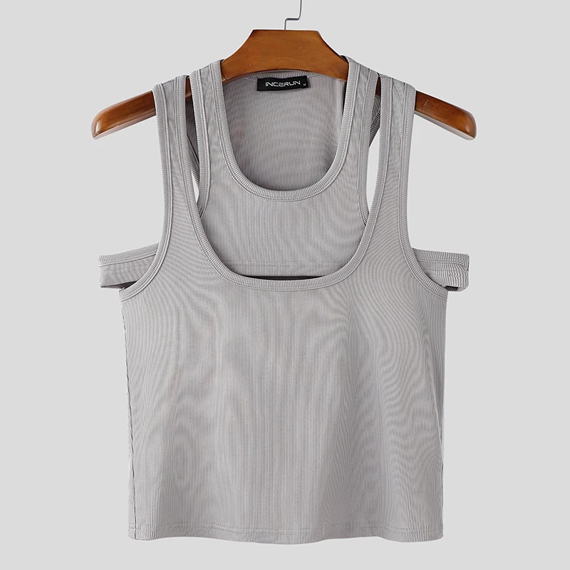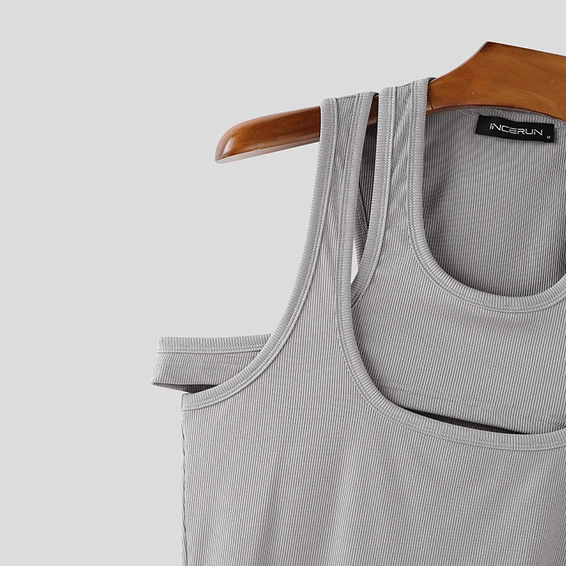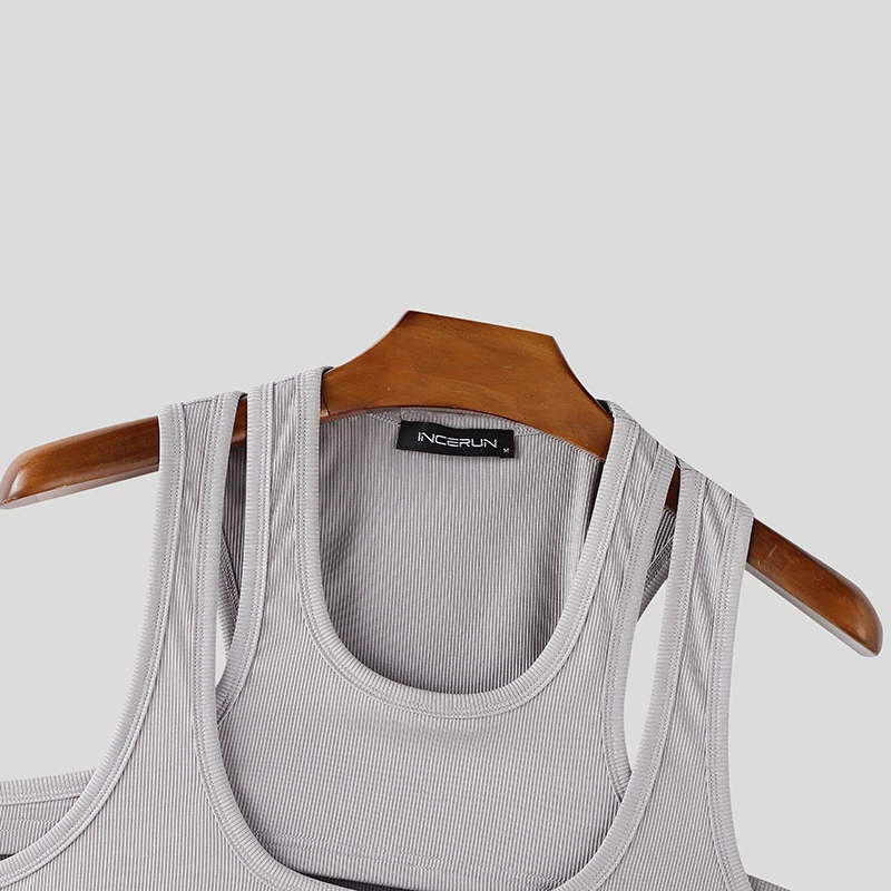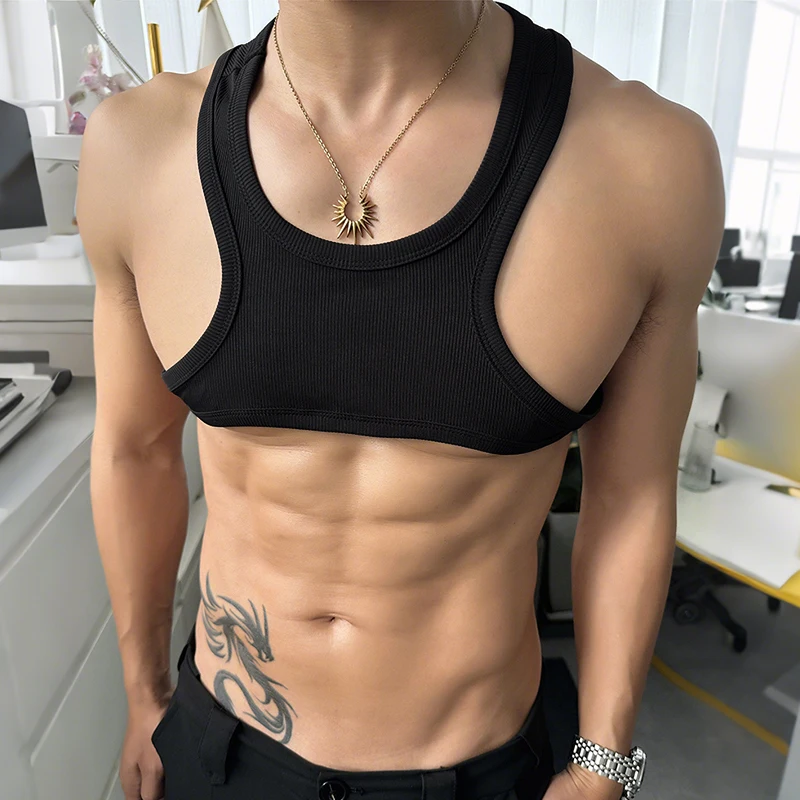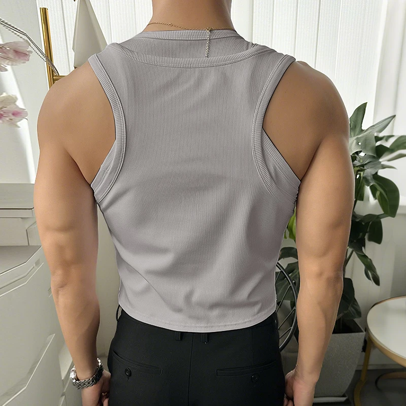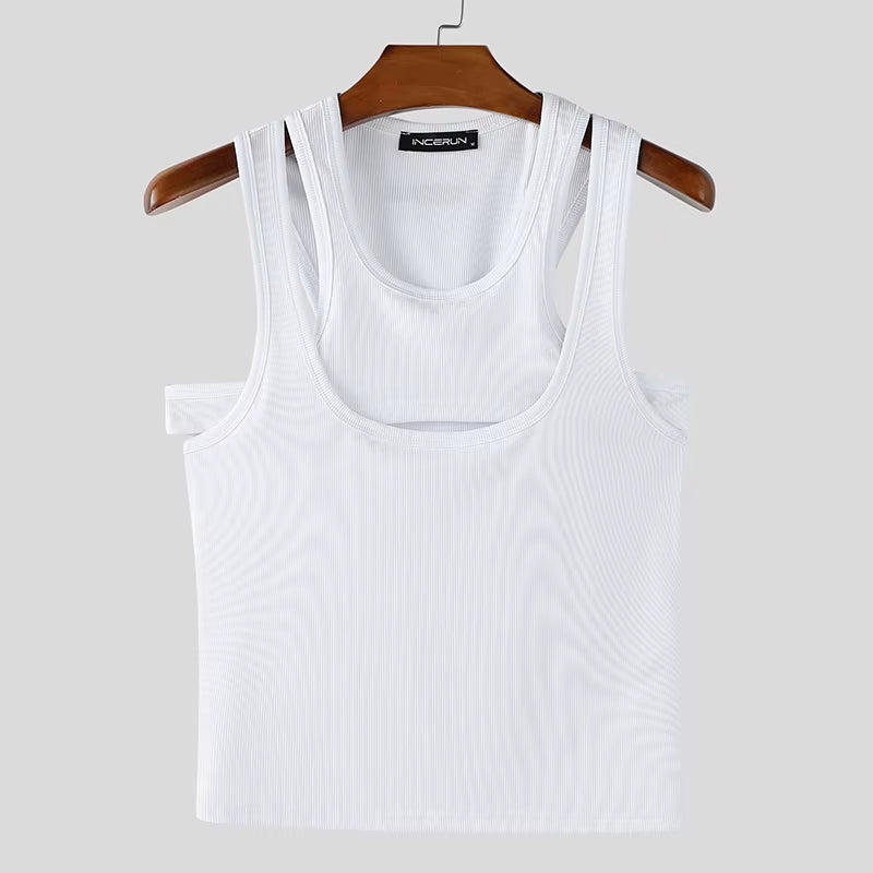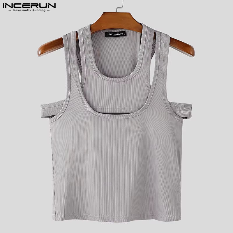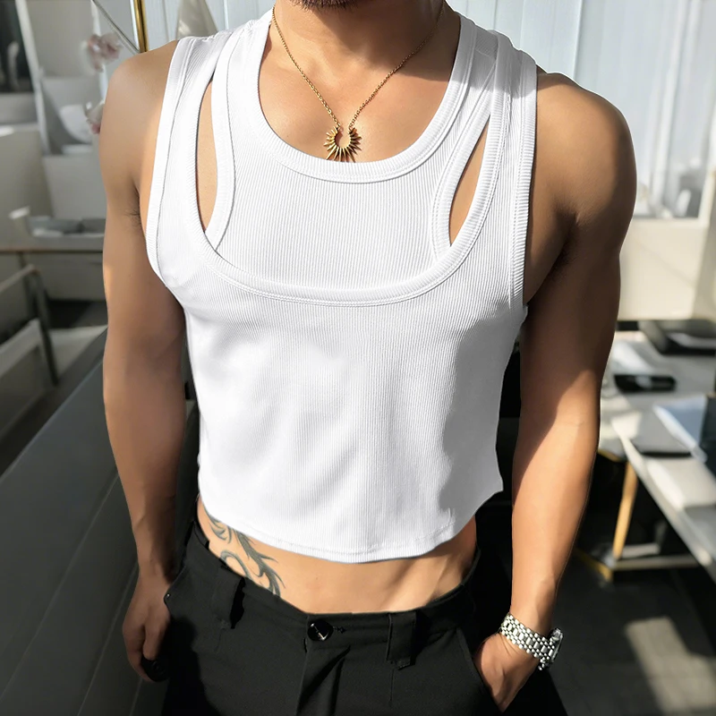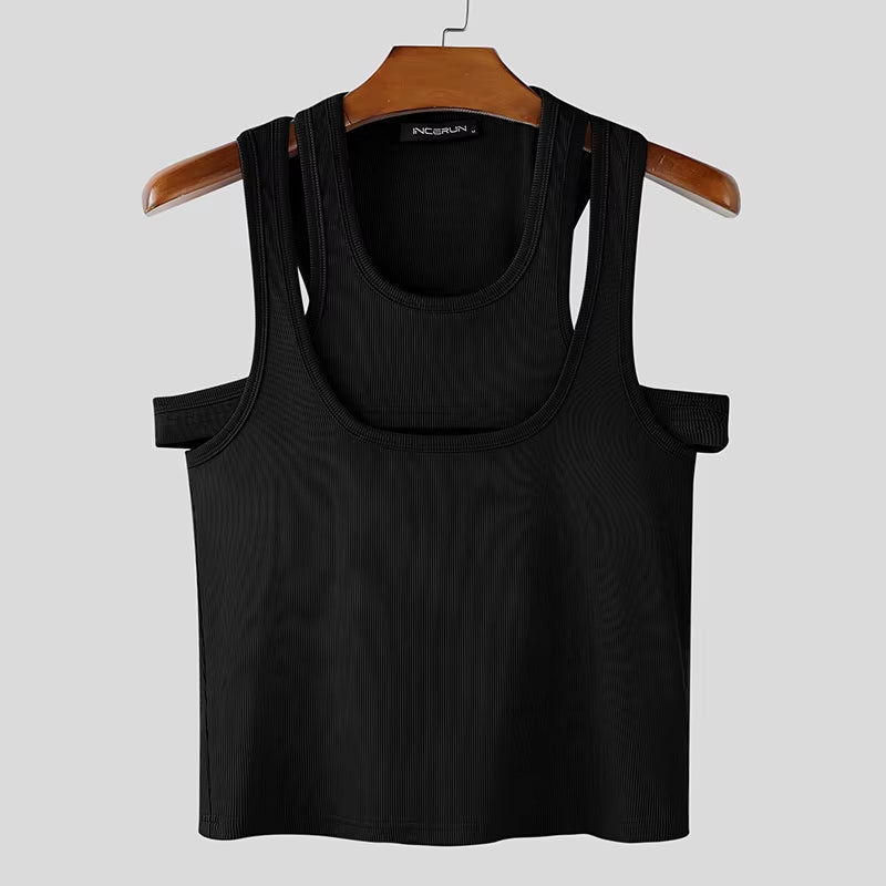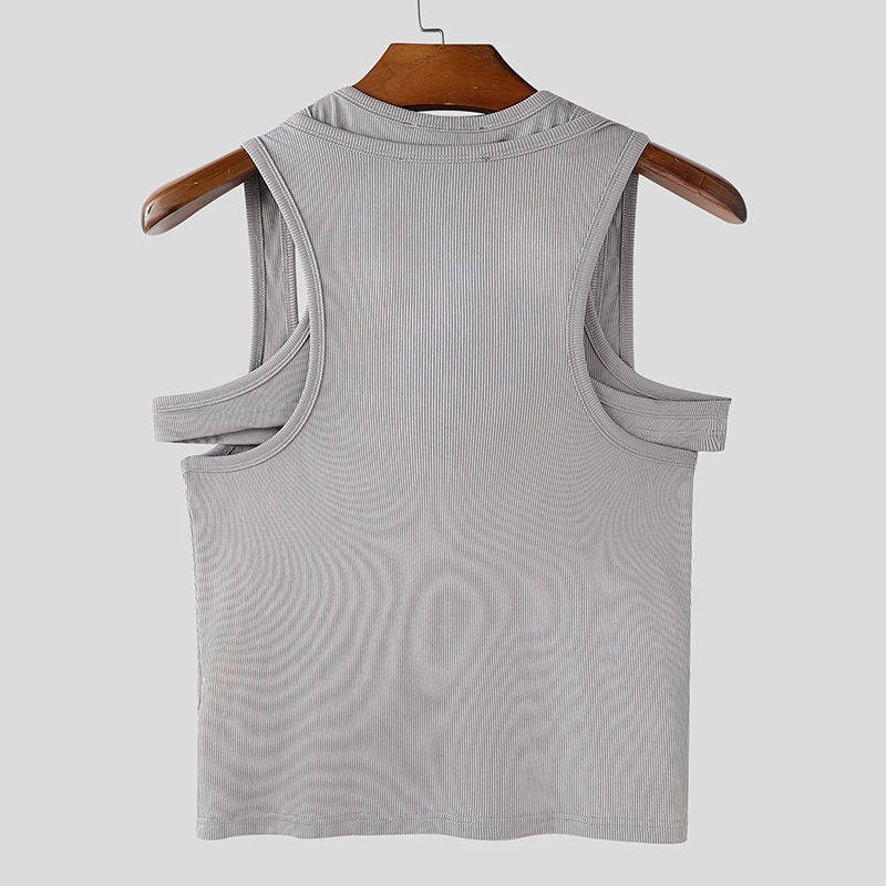 Men Tank Tops Solid Color Hollow Out O-Neck Sleeveless Male Vests Summer Streetwear 2025 Sexy Fashion Men Clothing S-3XL