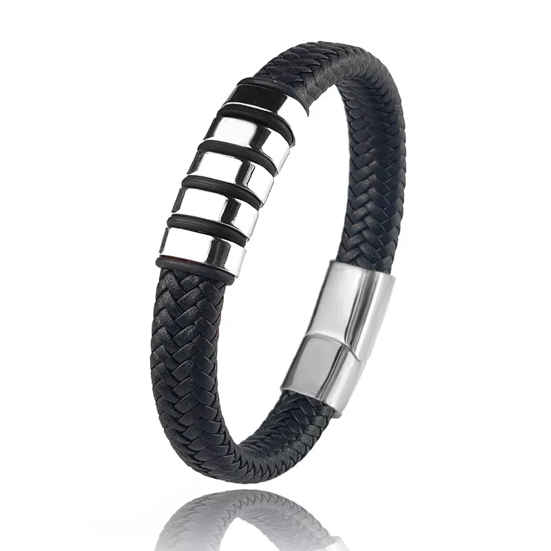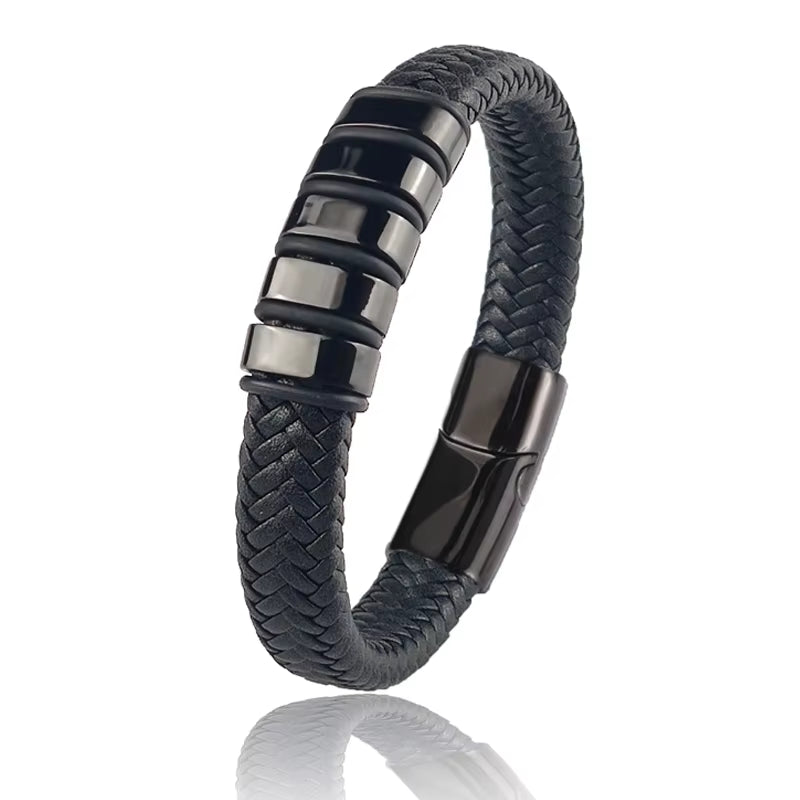 Mingao Free Custom Family Name Bracelets for Men'S Stainless Steel Leather Bead Charm Bracelet a Couple'S Anniversary Women Gift