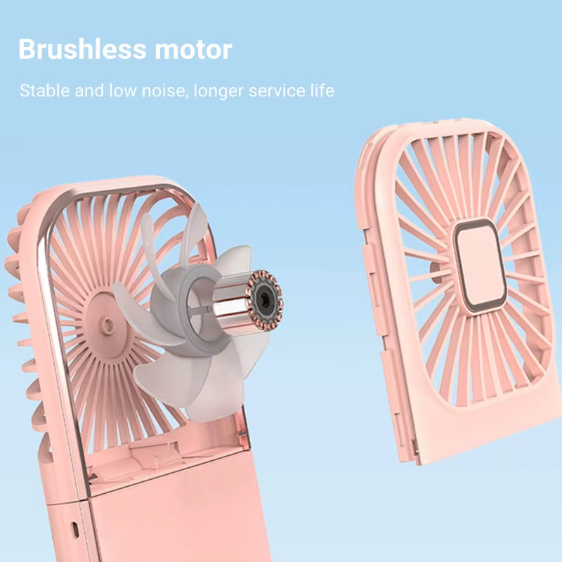 Built in 3000mAh battery,wireless and rechargeable,also can be used as a power bank;Four speeds wind adjustable,from soft wind to strong wind,meet different needs;3 in 1 multi-functional uses,standing,hand-held and hanging neck,apply to different places;180° folding design,easy to store,also can be used as a phone holder,free hands;Real-time battery power display,helps to charge the fan in time,in case the electricity runs out.