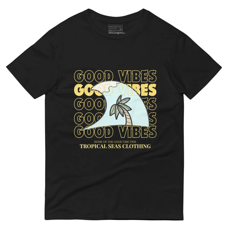 Introducing the Tropical Seas "Good Vibes" Short-Sleeve T-Shirt, a stylish and comfortable addition to your casual wardrobe. Made from premium cotton, it features a vibrant tropical-inspired graphic, spreading positivity and beachy vibes. Perfect for various occasions, pair it with your favorite bottoms for a trendy and laid-back look. Embrace the spirit of the tropics and radiate positivity with this fashionable tee!